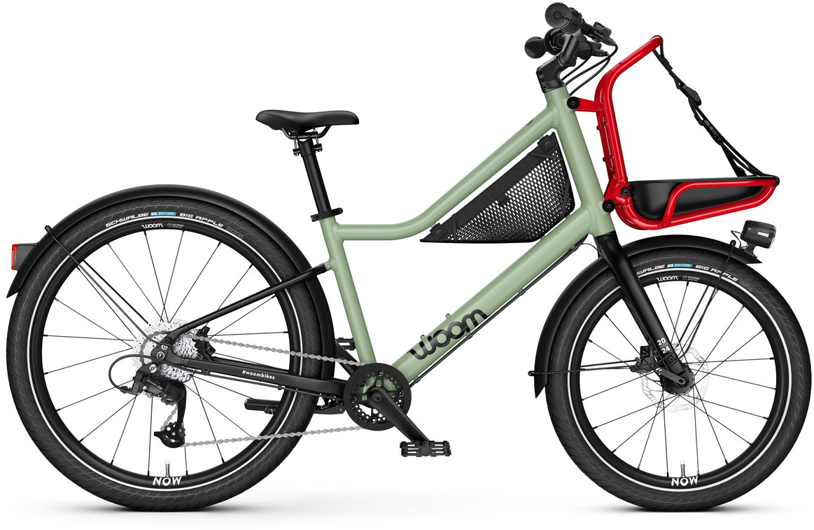The bike revolution by woom – our fully equipped urban lifestyle bike with a front rack and innovative frame design (20 inch front wheel, 24 inch rear wheel) for riders aged seven and up. Kickstand included.